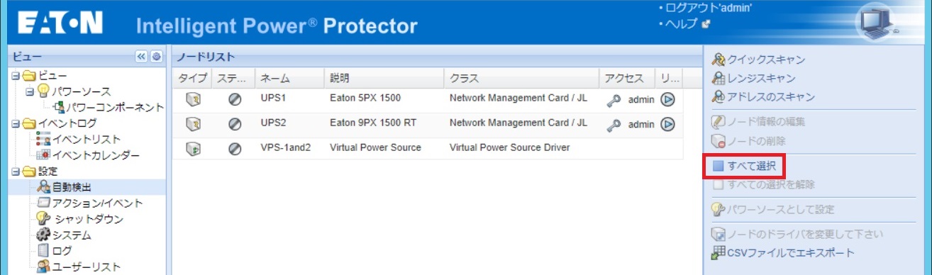 ここでは、既存のノードを全部削除して、新たにノードを検出してパワーソースと設定する手順を解説します。