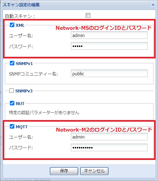 XMLにNetwork-MSの情報、MQTTにNetwork-M2の情報を入力して保存します。