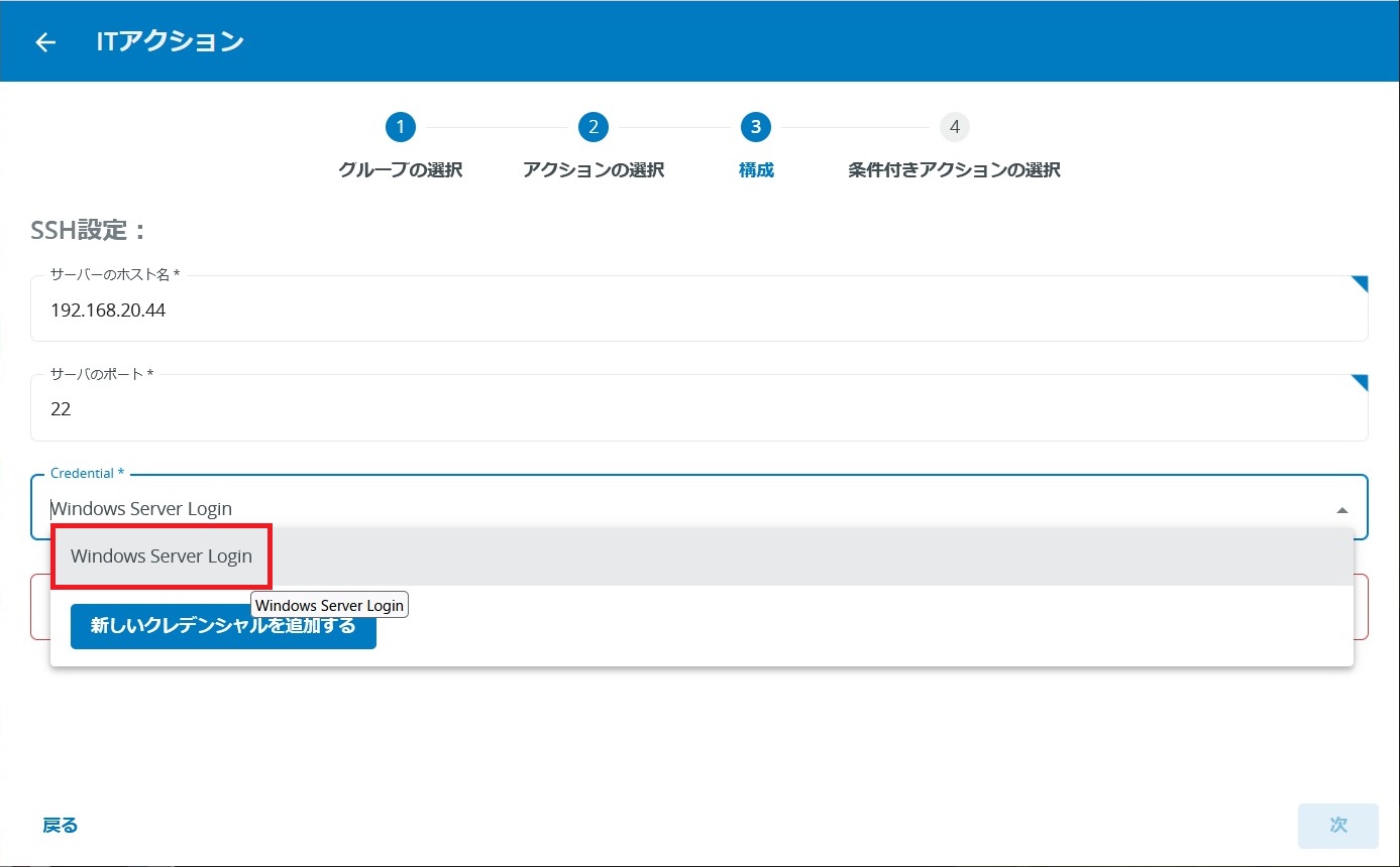 再びCredentialを押して、作成したクレデンシャルを選択します。