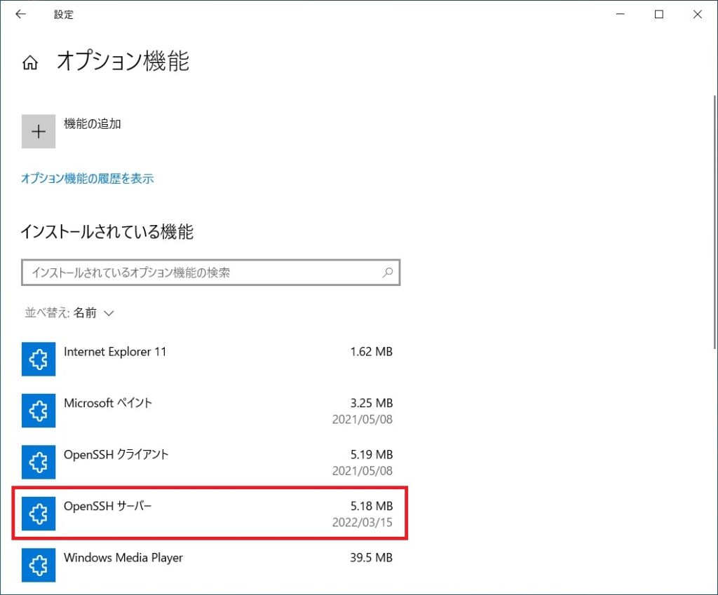 OpenSSH サーバーをインストール済みの状態にします。