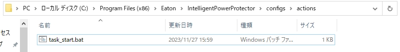 「C:/Program Files (x86)/Eaton/IntelligentPowerProtector/configs/actions/」フォルダにbatファイルを作成します。