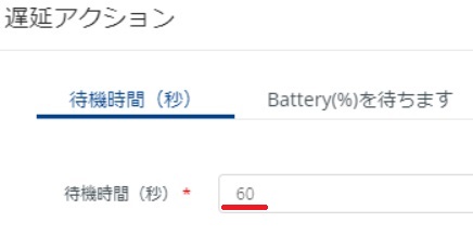 ※アクションを実行した時に、何かしらの原因でエラーが返ってきた時のためにタイムアウト値を設定します。設定した時間(秒)が経過すると、アクションエラーと判断してこのアクションから抜け出します。
