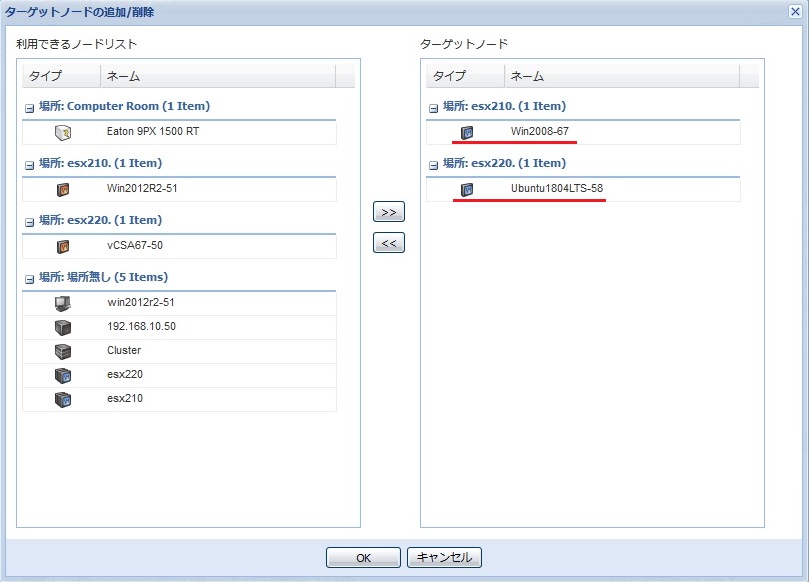 ターゲットノード:Ubuntu1804LTS-58の仮想マシンを右側のターゲットノードに移動してOK
