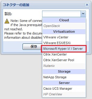 プルダウンの中から、Microsoft Hyper-V / Server を選択