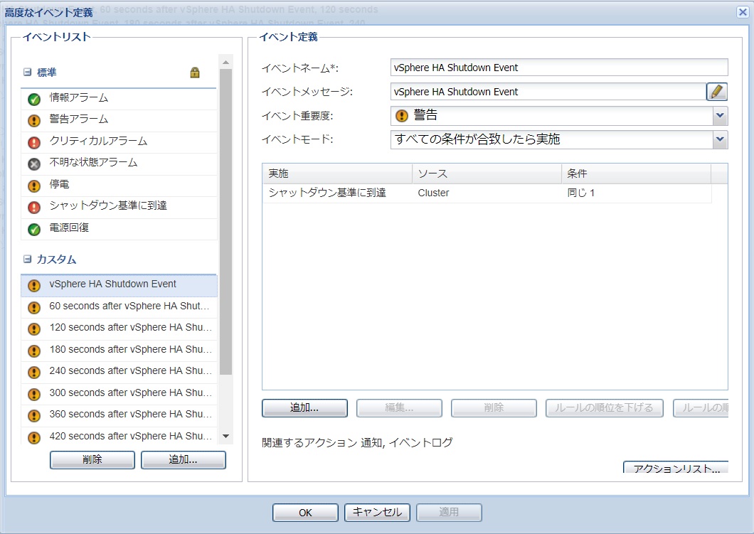 関連するアクションに、[通知]と[イベントログ]を追加します